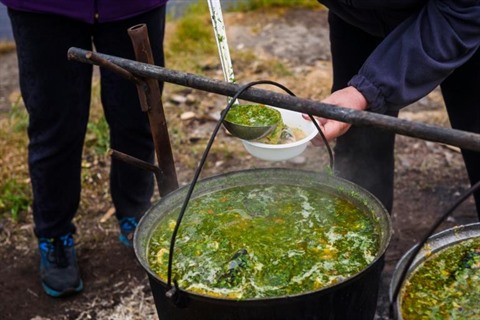 | Une soupe de lamproie mijote dans un chaudron, le 9 octobre à Salacgriva, en Lettoni. |
