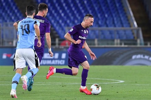 | L’attaquant français de la Fiorentina, Franck Ribéry (droite), buteur lors du match de Serie A face à la Lazio, à Rome, le 27 juin. |