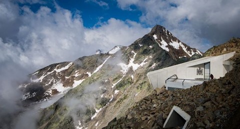 Frisson garanti: après une montée vertigineuse en téléphérique, c'est un parallélépipède de béton accroché à flanc de falaise, face à un panorama de cimes abruptes, qui attend le visiteur.