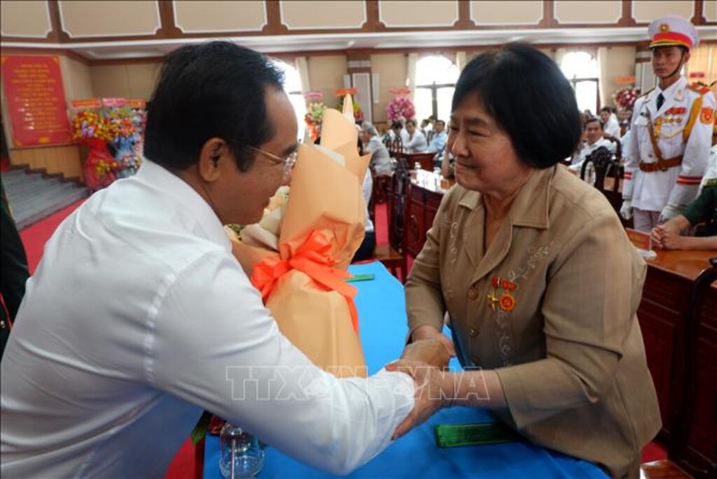 | l’Héros des forces armées populaires Trân Thi Sua lors de la cérémonie pour célébrer le 80e anniversaire de la fondation de l'Armée populaire du Vietnam (22 décembre 1944 - 22 décembre 2024) dans la province de Long An (Sud). |
