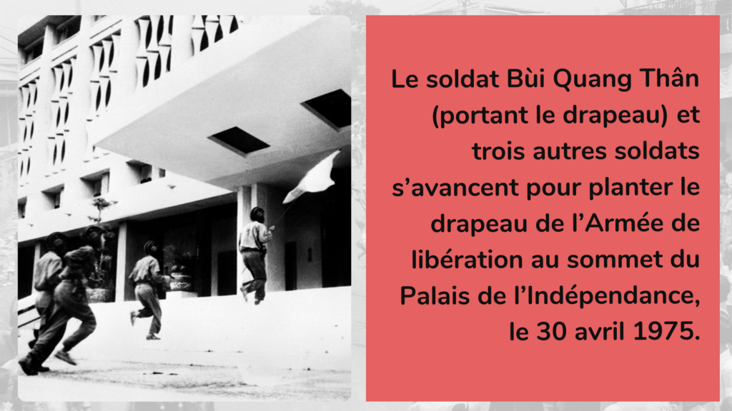 Le 30 avril, à 10h45, des tanks heurtèrent à la porte de fer du Palais d’Indépendance de l’administration fantoche de Saigon.
