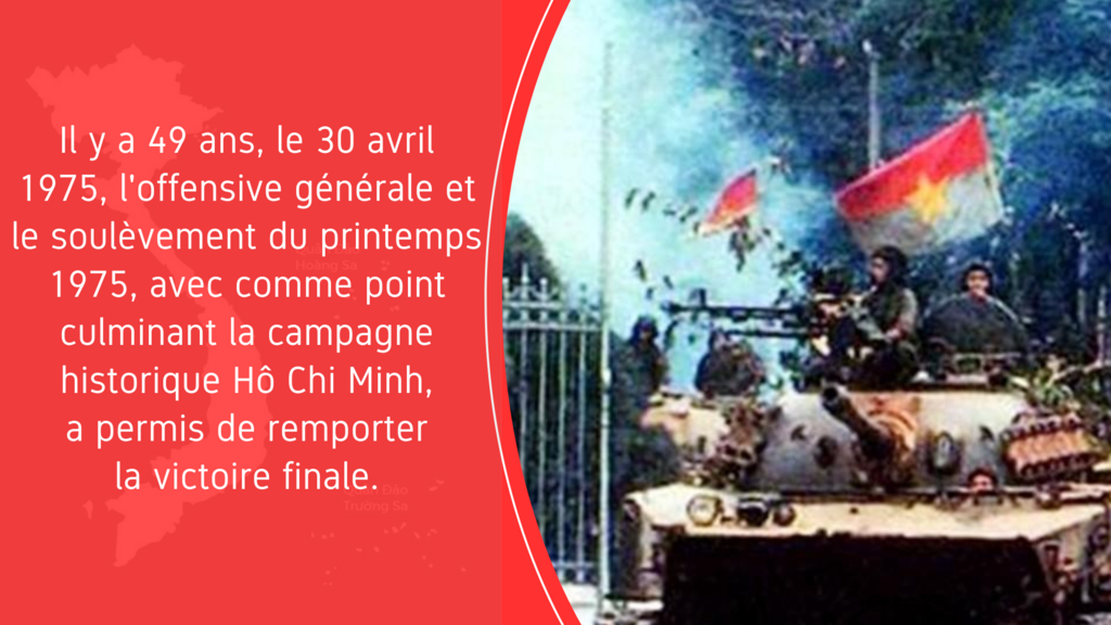 Le 30 avril est également le jour où les Vietnamiens ont réussi à réaliser le désir ardent du Président Hô Chi Minh de libérer le Sud et de réunifier le pays.