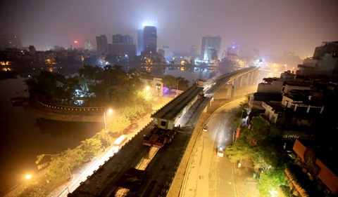 | Le chantier du projet de la ligne ferroviaire urbaine Cát Linh - Hà Dông, à Hanoï. |
