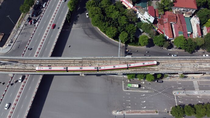 La ligne ferroviaire urbaine Nhon - gare de Hanoï est particulièrement importante pour les étudiants en termes de déplacement. La section surélevée fait seulement 8,5 km de long mais traverse 11 universités. En parallèle à l'exploitation de cette ligne ferroviaire, Hanoï a relié 36 lignes de bus actives.