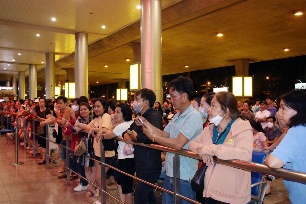| À l'aéroport Tân Son Nhât, Hô Chi Minh-Ville, des habitants attendant leurs proches, Vietnamiens d'outre mer, au retours au pays natal à l'occasion du Nouvel An lunaire 2024. |
