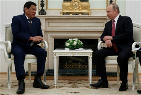 | Le président russe Vladimir Poutine (droite) avec le président philippin Rodrigo le 23 mai à Moscou. Photo : AFP/VNA/CVN |
