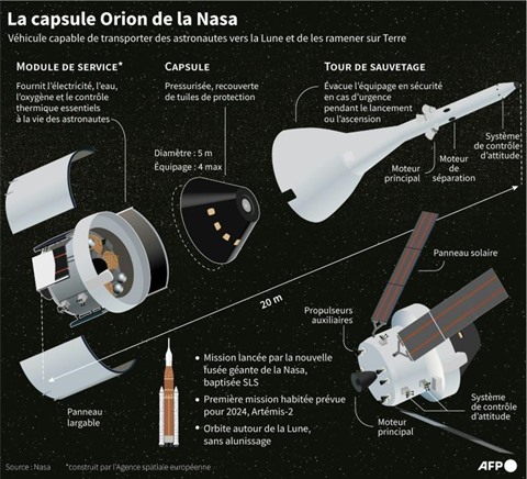 La capsule s'aventurera jusqu'à 64.000 km derrière la Lune, soit plus loin que tout autre vaisseau habitable jusqu'ici.