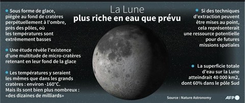 Les températures y seraient les mêmes que dans les grands cratères : environ -160°C. Mais ils sont bien plus nombreux : "on en trouve des dizaines de milliards, contre quelques centaines pour les plus grands", détaille Paul Hayne. En les ajoutant aux surfaces déjà repérées, la superficie totale d'eau sur la Lune atteindrait 40.000 km², dont 60% dans le pôle Sud, "suggérant que l'eau est plus répandue sur la Lune qu'on ne le pensait", explique ce chercheur, auteur principal de l'étude.