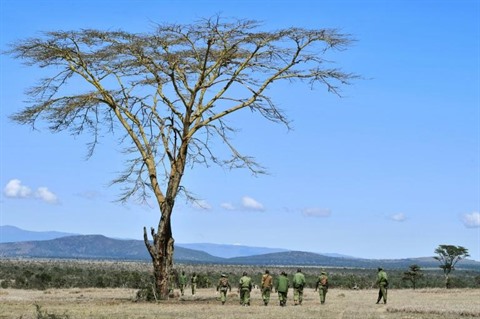 | Les rangers patrouillent dans la réserve animalière d'Ol Pejeta au Kenya, le 28 mai. |