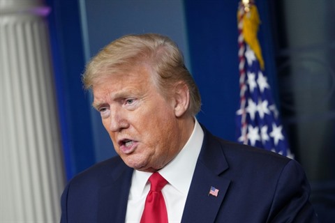 | Le président américain Donald Trump s'exprime depuis la salle de presse de la Maison Blanche, le 22 avril. |