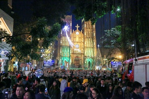 À Hanoï, depuis 19h00 le 24 décembre, les rues menant vers la Cathédrale Saint-Joseph étaient déjà pleines de monde. Les sapins avec des décorations multicolores, les chansons et mélodies de Noël qui résonnaient partout dans les centres commerciaux, les hôtels, les restaurants, les boutiques, les immeubles et des événements culturels ont donné aux Hanoïens et aux touristes de la joie et de la bonne humeur.