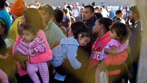 | Des migrants à la poste-frontalière Mexique - États-Unis. |
