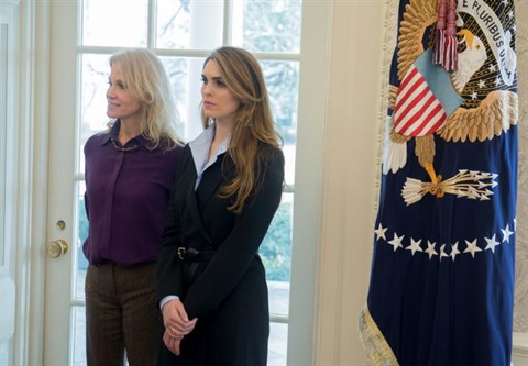 La directrice de la communication de la Maison Blanche, Hope Hicks (droite), dans le Bureau ovale vendredi 9 février. Photo : AFP/VNA/CVN |
