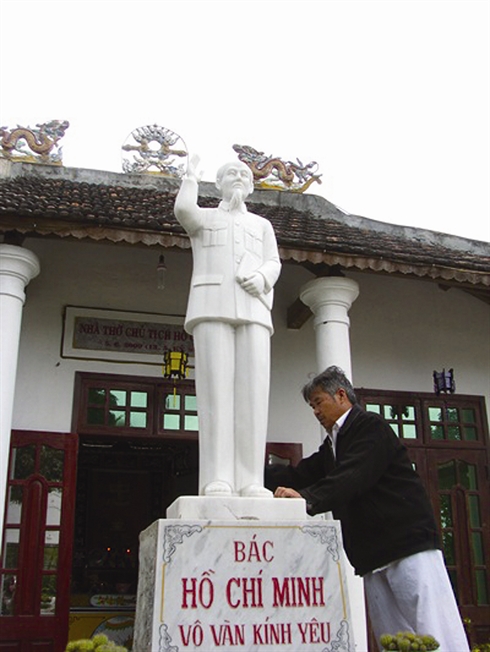 M. Thông a investi 200 millions de dôngs pour la construction de cette maison commémorative de 100 m². La statue de deux mètres est dressée devant la maison afin que tous les passants puissent la voir. Au milieu de la maison, il y a un autel avec une photographie de Hô Chi Minh en uniforme. Sur les murs, des photos, des poèmes et des œuvres du Président. La maison comprend également nombre de livres, de journaux et de documents sur l’Oncle Hô.