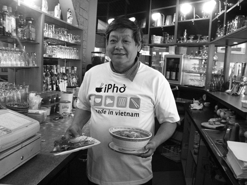 | Huynh Khanh Tiêt, patron de la Maison d’Asie, sert un bol de pho à ses clients. |