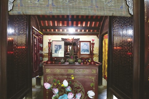 | À l’intérieur de la maison, l’autel des ancêtres trône dans la pièce centrale. |