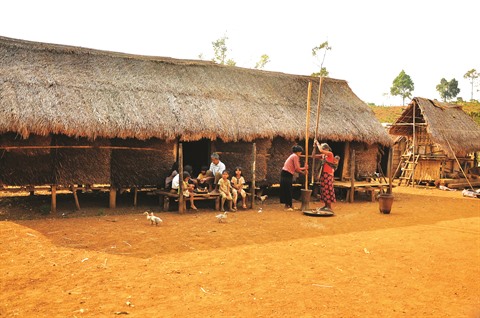 | La maison-longue est traditionnellement le lieu de résidence de plusieurs foyers Ma d’une même lignée familiale. |