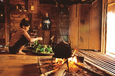 L’âme de la maison est certainement la cuisine avec notamment le coin du feu. Selon la tradition des Ma, le Génie du feu est sacré et apporte chance et prospérité. Ainsi, le feu dans la maison-longue ne s’éteint jamais. Derrière la maison, on installe un petit grenier de paddy.