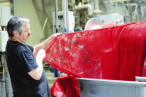 | Un employé des ateliers Sophie Halette, à Caudry, surveille le fonctionnement d’un métier à tisser. |