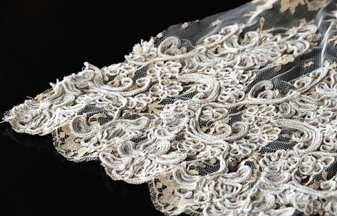 C'est une fine toile arachnéenne qui se distingue dans la lumière artificielle des hangars qui abritent les machines. Quelque 20.000 fils s'entrelacent mais ne s'emmêlent jamais dans les métiers Leavers, héritage d'un autre temps, celui de l'âge d'or de la dentelle anglaise au XIXe siècle.