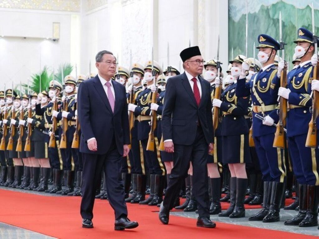 | Le Premier ministre chinois, Li Qiang (gauche) et son homologue malaisien, Datuk Seri Anwar Ibrahim. |