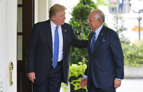 | Le président américain Donald Trump (gauche) et le Premier ministre malaisien Najib Razak, le 12 septembre à Washington. |