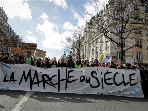 | Des manifestants défilent pour le climat et la diversité lors de "la marche du siècle" le 16 mars à Paris. |