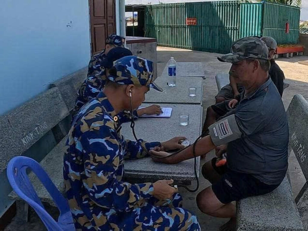 | Les médecins militaires stationnés à Da Lat (récif de Ladd) examinent la santé des pêcheurs du bateau de pêche PY 92628TS sinistré. |