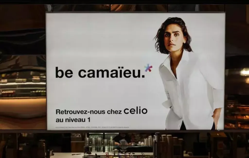 | L'affiche invitant à retrouver "be camaïeu" dans la boutique Celio agrandie pour l'occasion au centre commercial Euralille, le 29 août. |