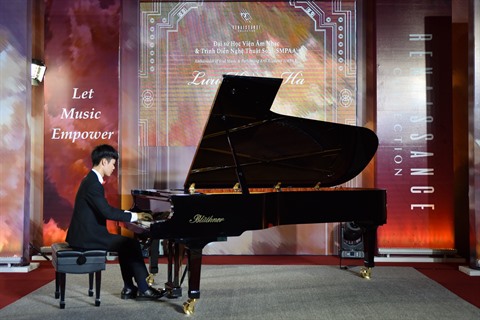 | Le jeune pianiste Luu Hoàng Hà jouant sur le piano à queue Modèle 1 de Blüthner lors de la cérémonie d'ouverture. |