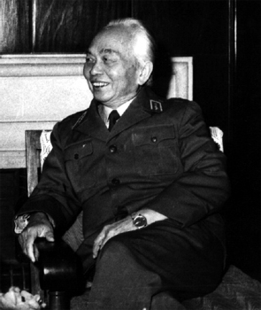 | La photo du général Giap, stratège militaire appelé par la presse occidentale «le volcan sous la neige», prise en 1989, parue dans La Marseillaise du général Giap. |
