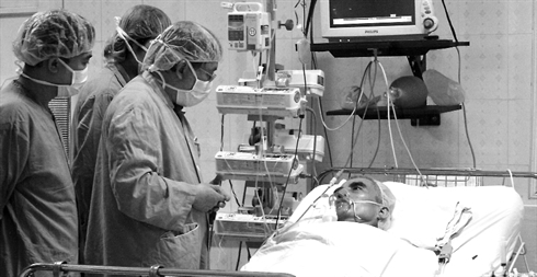 | Les docteurs de l’hôpital Viêt-Duc examinent la santé d’un patient qui a passé une opération réussite de greffe du cœur. |