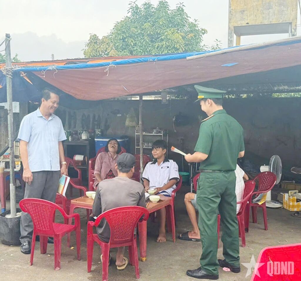 | Les cadres du poste de garde-frontière de Cần Thạnh (Commandement des garde-frontières de Hô Chi Minh-Ville), accompagnés des responsables locaux, se sont rendus dans les quartiers résidentiels pour sensibiliser la population au droit. |