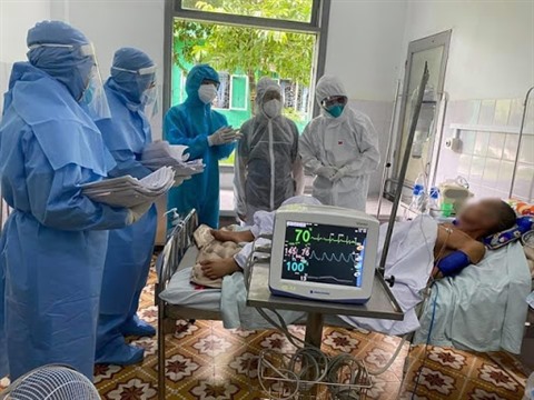 | Des médecins vietnamiens portent des équipements de protection individuelle dans une salle médicale. |