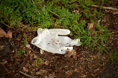 | Ce n’est pas difficile de trouver un masque ou un gant médical dans la pelouse d’un parc. |