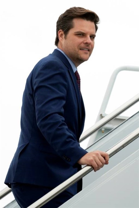 | L'élu Matt Gaetz monte à bord de l'avion présidentiel Air Force One, à Orlando en Floride, le 9 mars. |