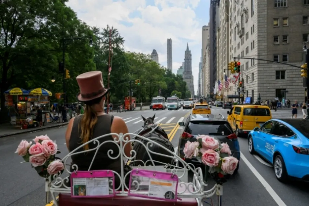 | Une calèche dans Central Park, à New York, le 3 août 2022. |