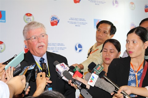 | Carlyle A. Thayer, professeur de l’Université New Shouth Wales, Institut de la défense d’Australie, lors d’une interview dans le cadre de la conférence. |