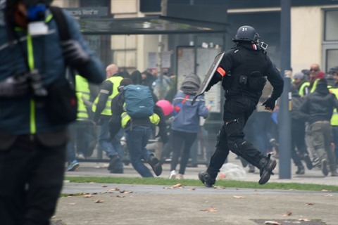 Après des scènes de guérilla urbaine et de saccages qui avaient fait le tour du monde, la France avait de nouveau été placée sous haute sécurité, avec 69.000 membres des forces de l'ordre déployées, dont 8.000 à Paris, appuyés par des véhicules blindés à roues de la gendarmerie.