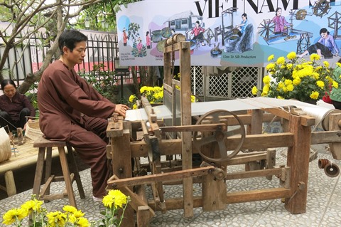 | L'exposition "Processus de tissage de la soie" se tient du 14 au 19 mars à la Casa Italia, à Hanoï. |