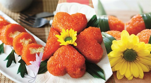 | Le riz gluant à la momordique présente une belle couleur rouge. |
