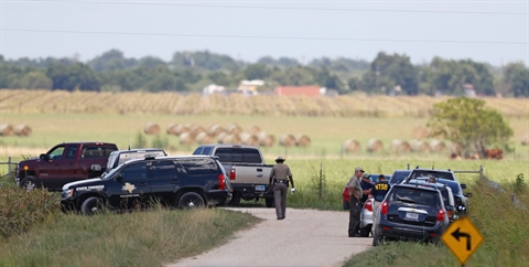 | Des enquêteurs sur le site où s'est écrasée une montgolfière avec au moins 16 personnes à bord, au Texas le 30 juillet dans le Sud des États-Unis. |