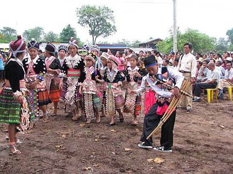 | Le khène est partie prenante de la fête du Nouvel An de la communauté des H'mông au Laos. |