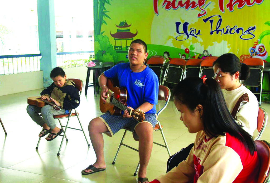 Ces enseignants sont des artistes locaux dont Truong Luong Hy (37 ans). Après avoir obtenu son diplôme de l’Académie de musique de Huê, M. Hy ouvre le centre de musique Mi Fa Do. Deux fois par semaine, il se rend au Centre de soutien au développement de l’éducation inclusive de Dà Nang avec les professeurs de son centre. Malgré un emploi du temps chargé, il consacre tout son temps et son énergie à ces enfants.