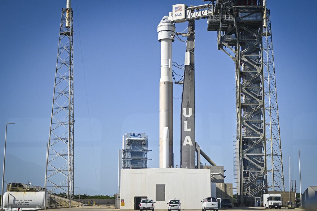 | La fusée Atlas V du groupe ULA et la capsule Starliner de Boeing à son sommet sur le pas de tir du Centre spatial Kennedy, le 31 mai en Floride. |