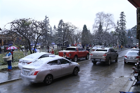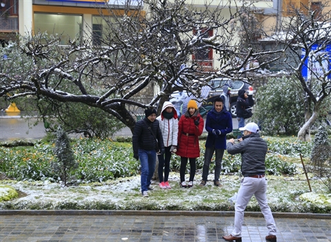 | Des touristes se ruent vers le bourg pour admirer la neige. Photo : Anh Tuân/CVN |