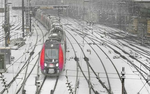 Un train roule sous la neige à la gare Saint-Lazare à Paris, le 9 février 2018. Photo : AFP/VNA/CVN |