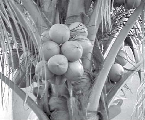 L’huile extraite de l’amande : acides gras fixes combinés à la glycérine. Pour 100 parties : 87,27 d’acide laurique, 2,35 d’acide palmitique, 9,98 d’acide oléique, et 0,40 d’acide butyrique et caproïque. Cette huile ou “beurre de coco“ formant une émulsion très fine en présence de bile et de suc pancréatique, est très assimilable.