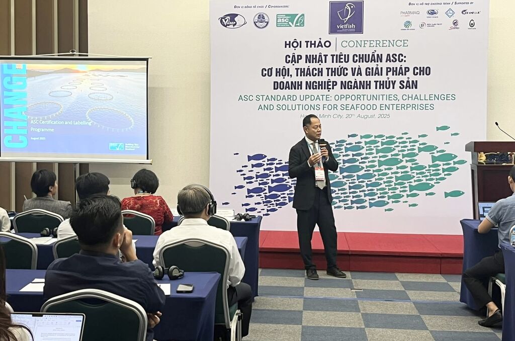 Le colloque sur la mise à jour des critères de la norme ASC (Aquaculture Stewardship Council) s’est tenu le 20 août dans le cadre du Salon international des produits aquatiques du Vietnam (VIETFISH 2025), au Centre des foires et expositions internationales de Saigon (SECC). Plus de 200 entreprises y ont participé afin de se préparer à la nouvelle version de l’ASC, entrée en vigueur le 1er août.