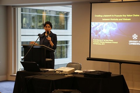 | Suzanne Gilham, responsable du ministère de l'Industrie et du Développement de la NSW, au séminaire "Établir un réseau pour promouvoir la chaîne de valeur entre le Vietnam et l'Australie", le 16 février à Sydney. |